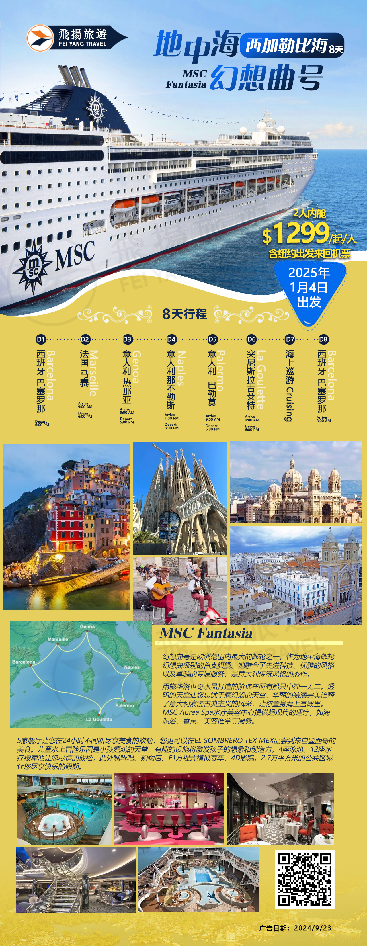 【MSC 幻想曲号】地中海西加勒比海 8 日