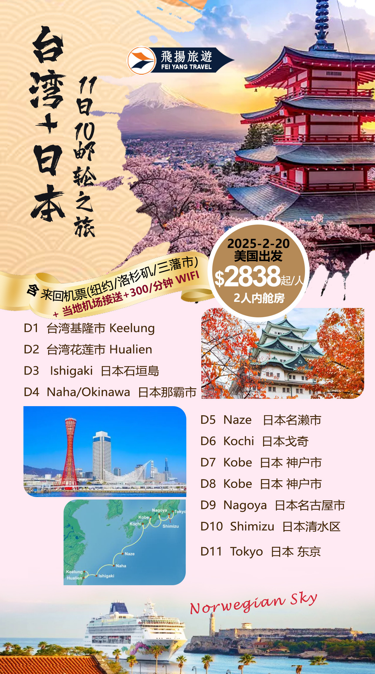 【NORWEGIAN SKY】台湾+日本邮轮之旅11日