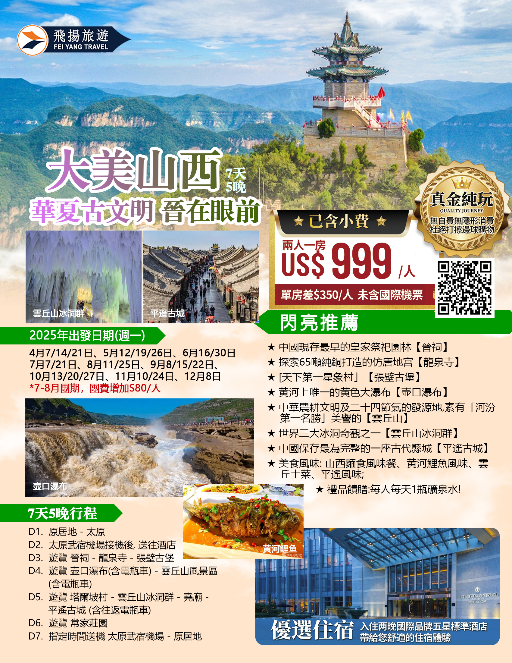山西 太原 壶口瀑布 平遥古城纯玩 7 日