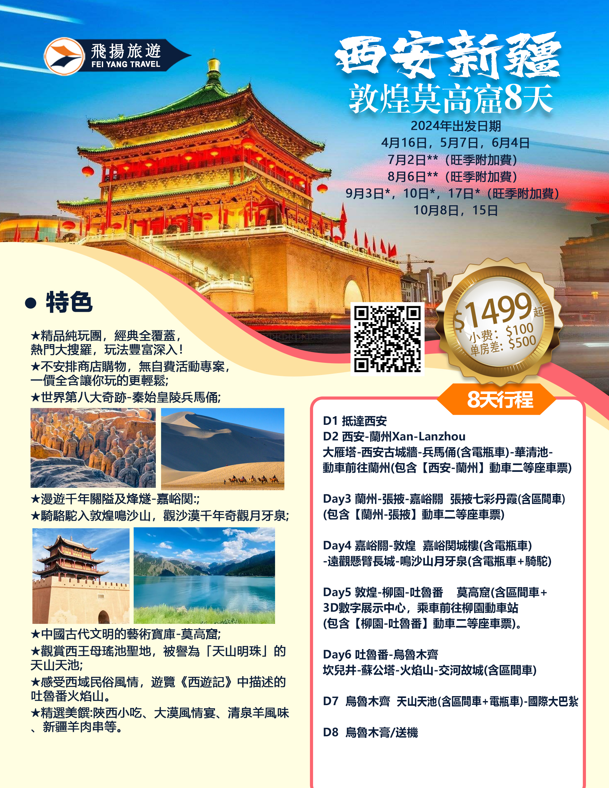 团费:$1499 单房差:$500 小费:$100 (**为旺季 附加费$100,旺季单房差$600)18岁以下不占床(无早)$999 18岁以下占床(有早)$1499 酒店续住$98/晚(含早) 额外接/送机$30/人 (两人起)