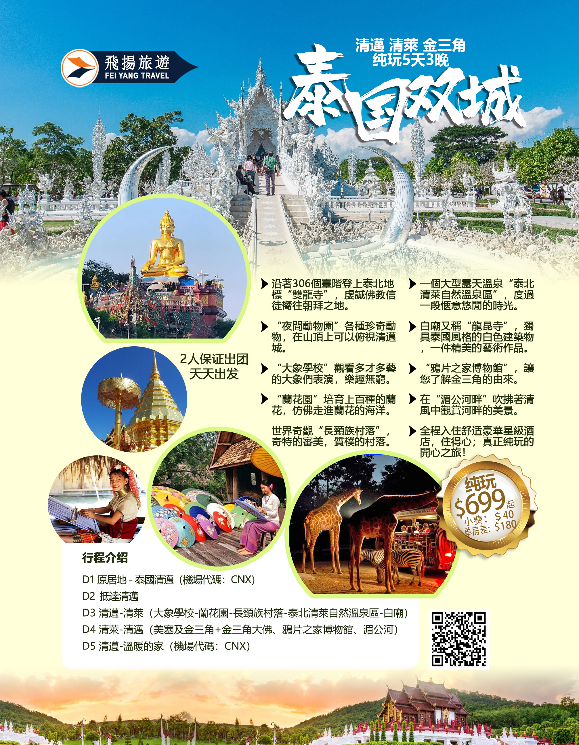 遊覽景點:大象學校、蘭花園、長頸族村落、泰北清萊自然溫泉區、白廟
