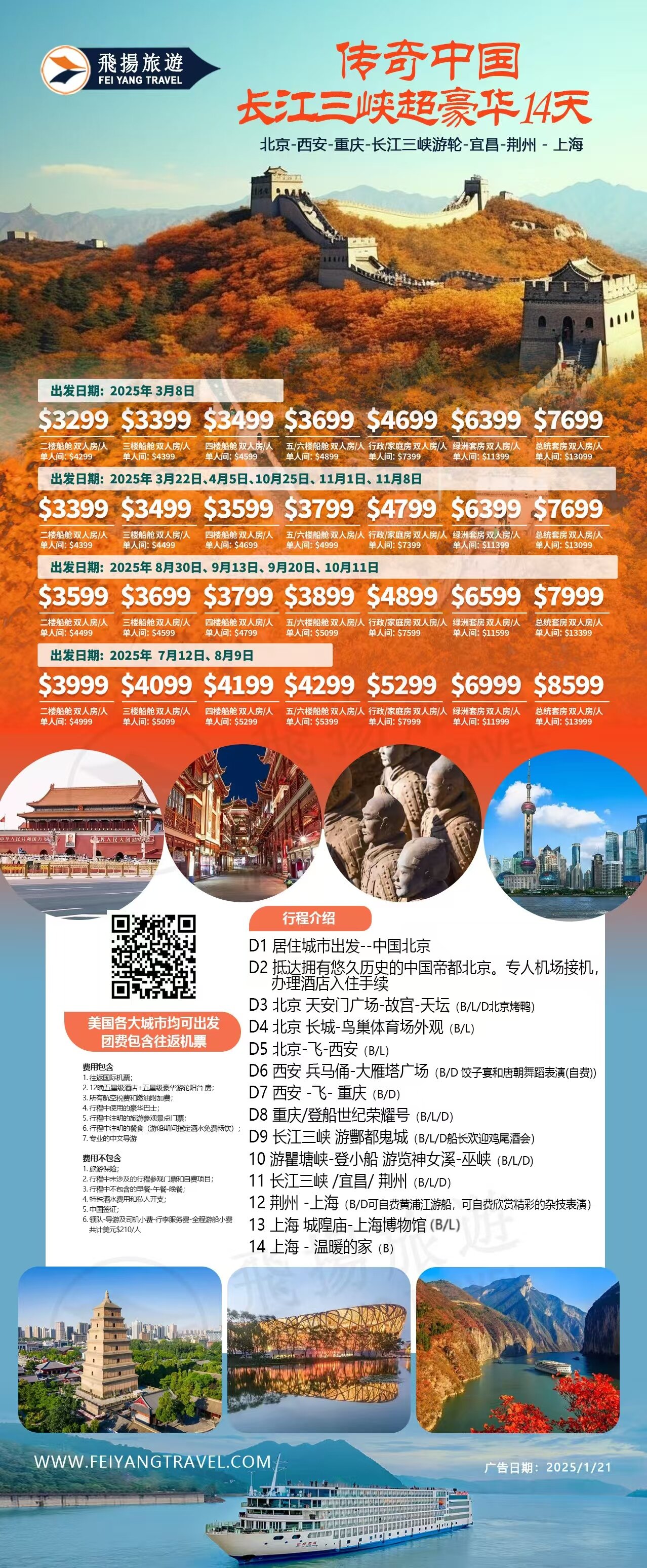 出发日期:2025年 10月25日、11月1日、11月8日