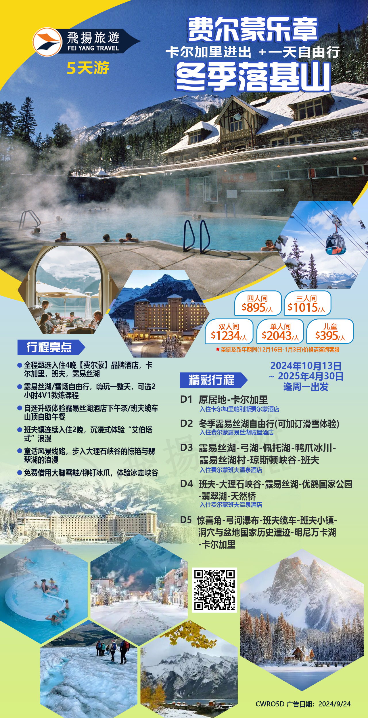 费用不包含:联邦服务税5%GST(加币不合:美金含);司机导游服务费(每人每天$15加币,按送机每人每次$4加币);全程餐饮;行程中提及的活动门票费用:其它私人消费,如流灰、电话、饮品、购物、收劳电板等;因文通证阻、战争、攻变、罢工、天气、飞机机器故障、航难取消或更改时间等不可抗力原玉所导致的额外费用;任何种类的旅游保险。
