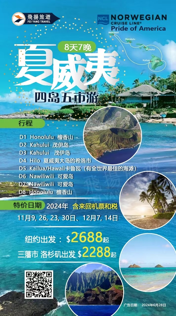 团费明细:特价日期:2024年11月9、23、26、30;12月7、14(含来回机票和税)
